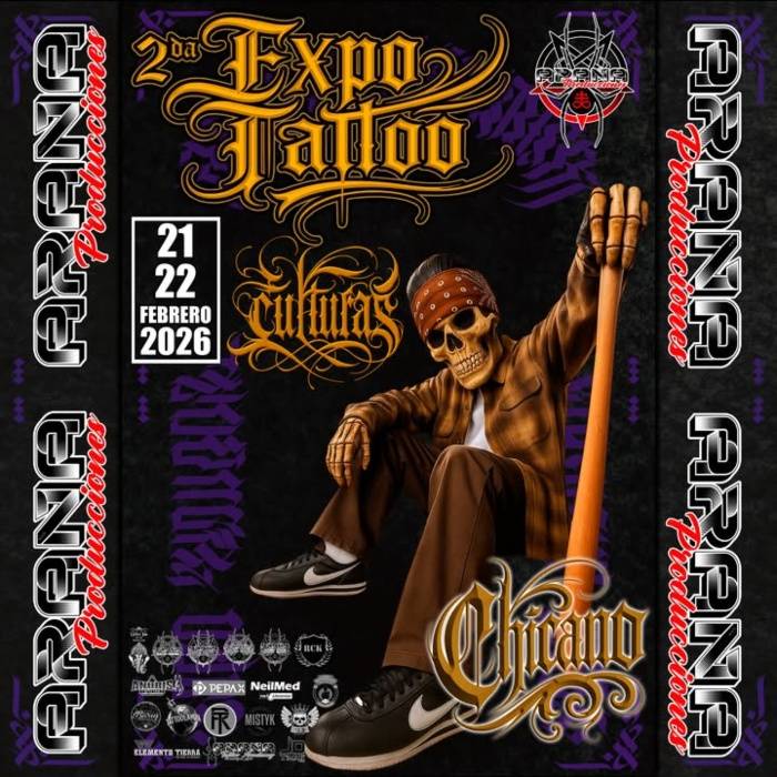The event will take place in the city of Bogota on February 21th and 22th, 2026. It will be the second edition of EXPO TATTOO CULTURAS – CHICANO theme.